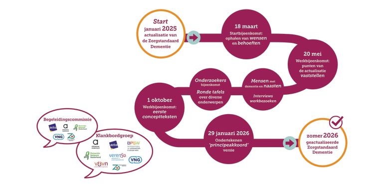 - In de zomer van 2026 verwachten we dat de nieuwe Zorgstandaard Dementie af is.