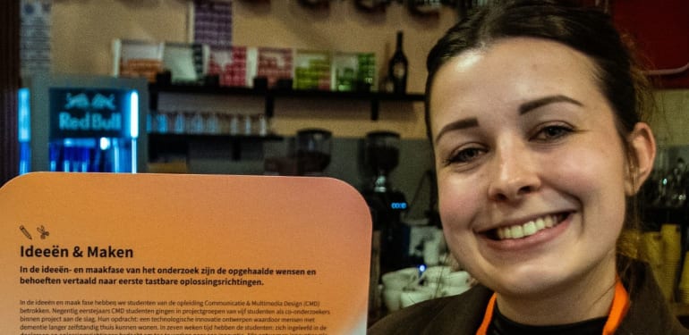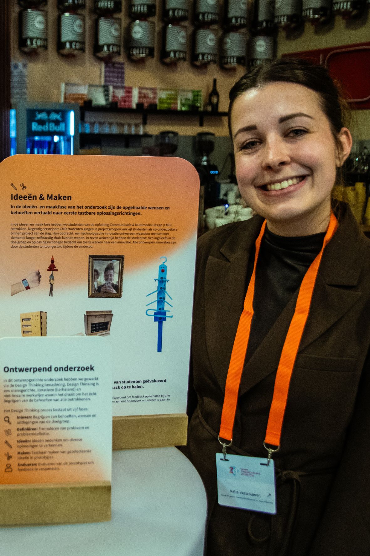 Bij het project ‘Thuis van de toekomst’ staan mensen met dementie en hun naasten vanaf het begin centraal. Onderzoeker Katie Verschueren: ‘Alleen al het bezoek aan iemand thuis is belangrijk. Mensen voelen zich gehoord en willen mee blijven doen.’ Met eenvoudige methoden brengen ze in kaart wat iemand nog zelf kan en wil, en wat niet meer lukt. Technologie wordt zo samen met mensen ontwikkeld, niet over hen heen. ‘Ze kunnen veel meer dan we soms denken’, zegt Katie.